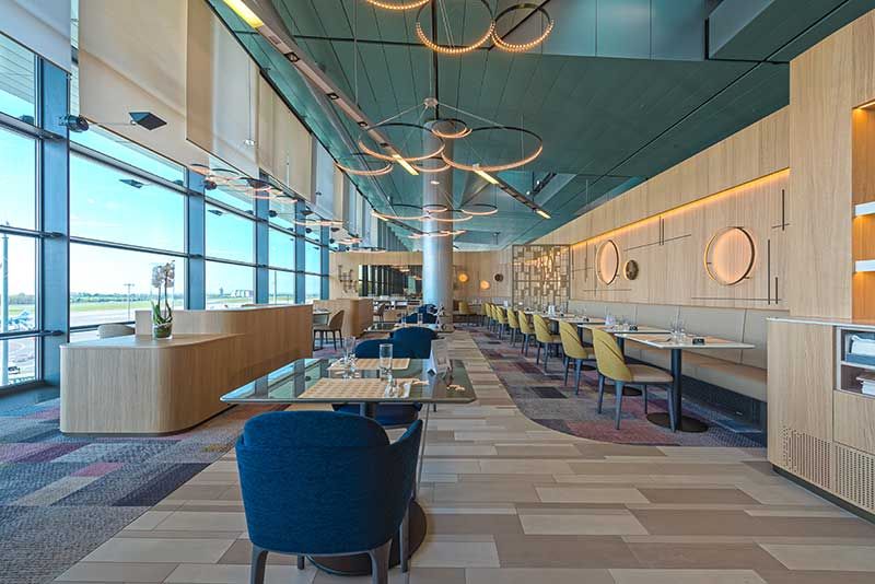 Le restaurant Oberweis, au premier étage de l’aéroport, vous invite dans un cadre chaleureux aux structures boisées et à la décoration soignée. Savourez un repas délicieux tout en profitant de la vue imprenable sur la piste et le ballet aérien. La boutique, située à l’entrée de l’aéroport, propose une sélection de mets sucrés et salés aux saveurs uniques « made in Luxembourg », à savourer dès votre arrivée.